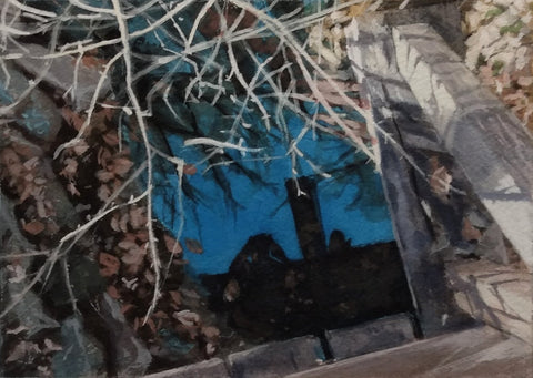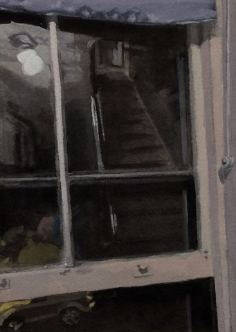 Night Stair, ink, watercolor & gouache, 7" x 5" SOLD