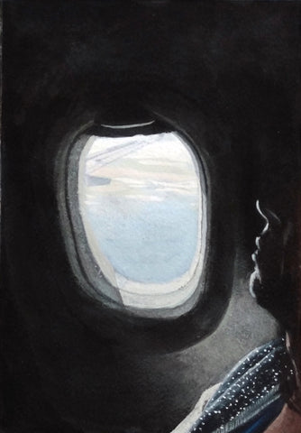 Flight, ink, watercolor & gouache on paper, 7" x 5" SOLD