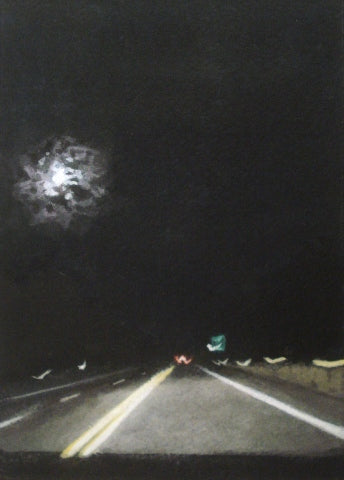 Highway Moon, ink, watercolor, gouache on Arches, 11" x 9" SOLD