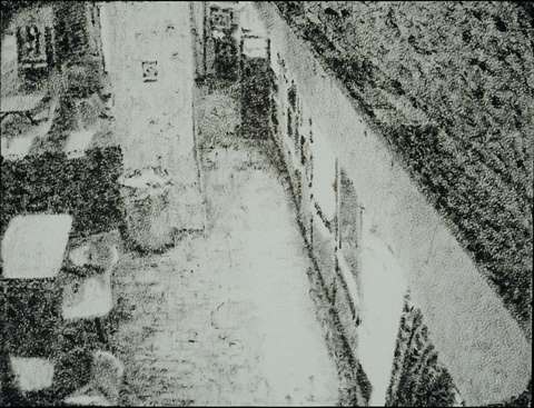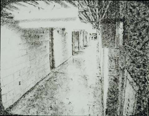 Loading Dock, etching ink on paper, 14" x 16" Available