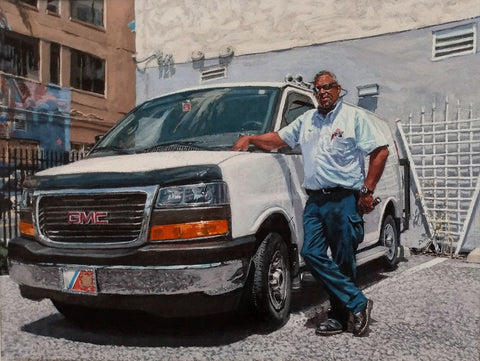 Man with Van (Portrait of Brent), ink, watercolor & gouache, 8" x 10.5" Available