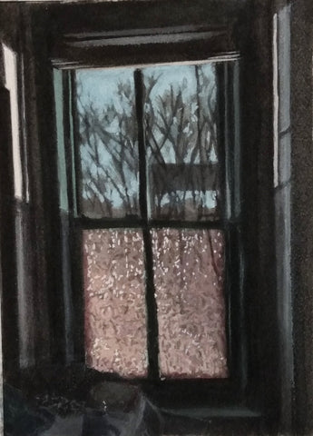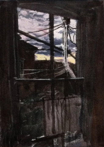 Night Window, ink, watercolor & gouache, 7" x 5" Available