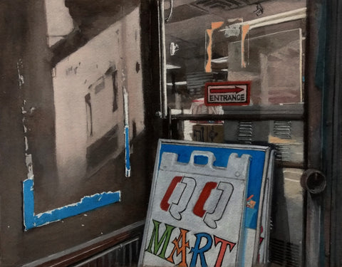 QQ Mart, ink, watercolor & gouache, 8" x 10.5" SOLD