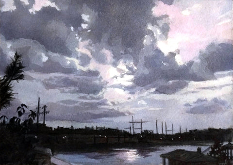 River Clouds, ink, watercolor & gouache on paper, 5" x 7" SOLD