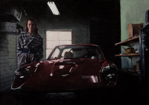 Honda, ink, oil on canvas, 17.25" x 23.25" Available