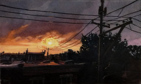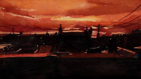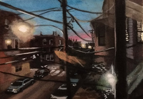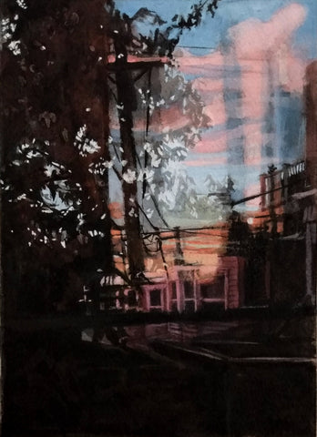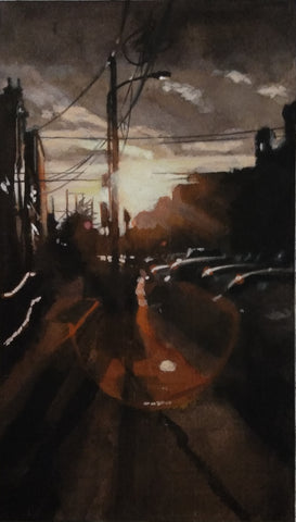 Sunset Street, ink, watercolor & gouache, 10.5" x 6" SOLD