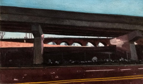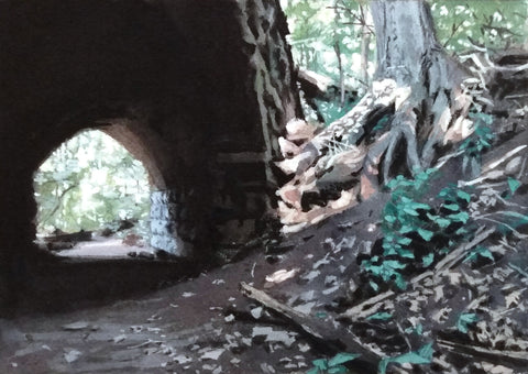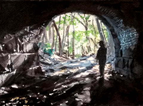 Tunnel, ink, watercolor & gouache, 5" x 7" SOLD