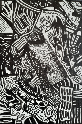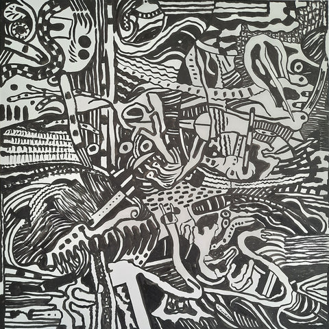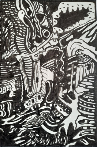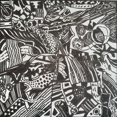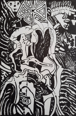 Watch Where You Step, ink with pen, 22" x 22"
