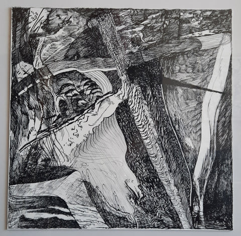 Ragged Riverbed, brush and ink on illustration board, 15" x 15"