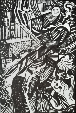 Jumping Jazz Time, ink with stick, 25" x 22"