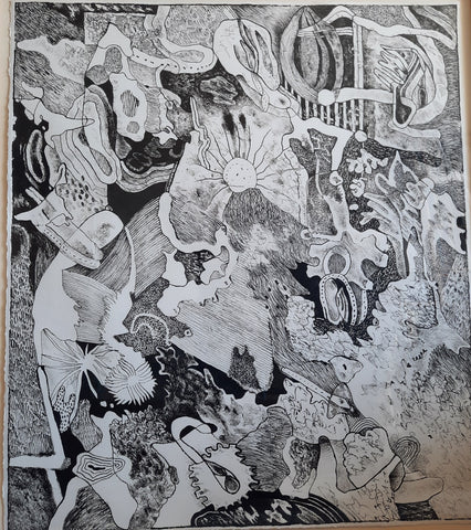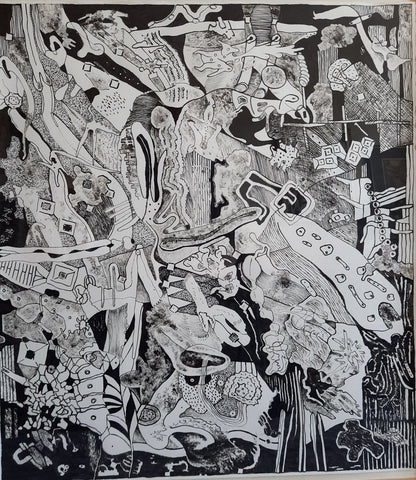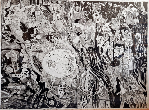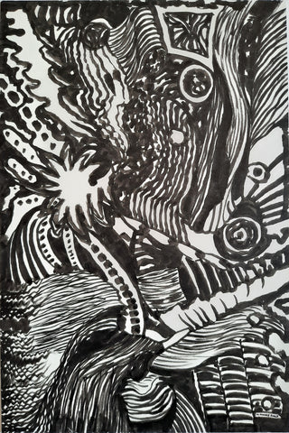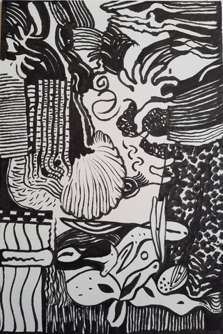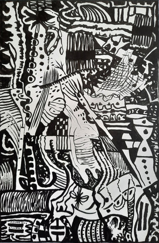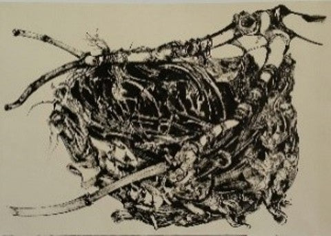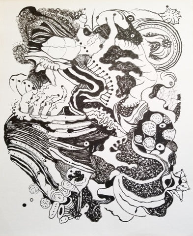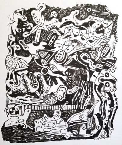 Clutter Bunch, Japanese ink on bamboo paper, 21" x 17"
