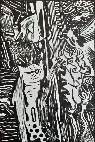 Linking, ink with stick, 24" x 20"