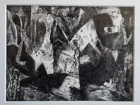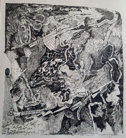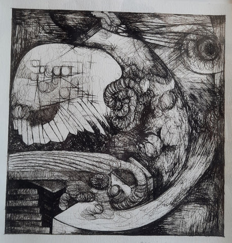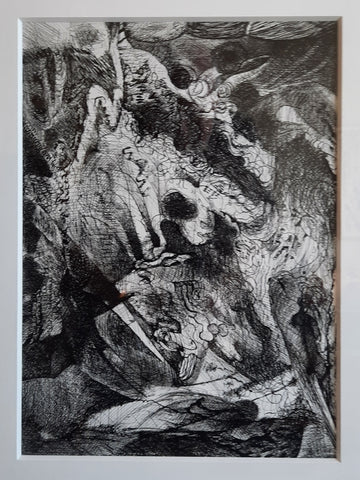 It Happened Suddenly, ink on paper, 14" x 12"