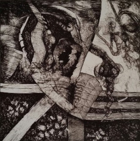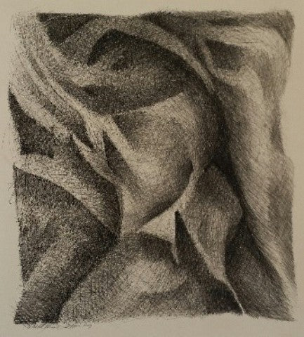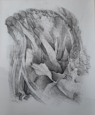 Softly Folded, ink on paper, 17" x 15"