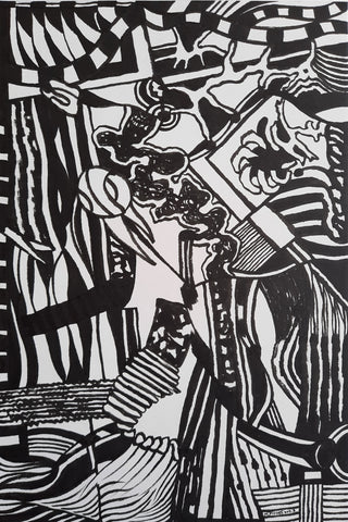 Joker in the Jazz Band, ink on paper, 23.5" x 22" SOLD