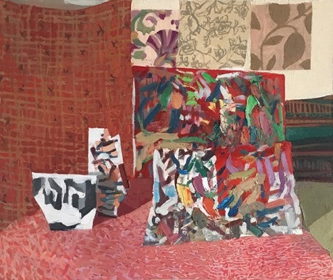 Claire Kincade, Red Arrangement, oil on canvas mounted on panel, 22" x 26"