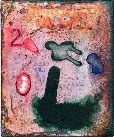 Adam Lovitz, Fish Stick, acrylic and found mineral (schist) on panel, 11.25" x 9.25"