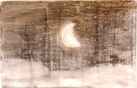 Liza Samuel, Moon, bones, hide, glue, calcium carbonate on wood panel, 6" x 9" SOLD