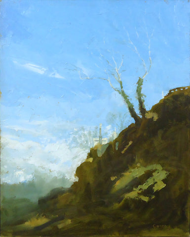 Patrick Connors, Twin Sycamores, oil on linen, 20" x 16"