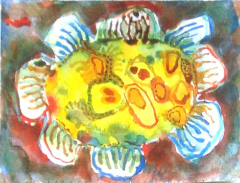 Patty Castner, Yellow Cell with Fin Receptors, watercolor and gouache, 3.75" x 5" Available