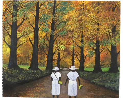 Earl Flowers, Autumn Walk, acrylic on paper, 11" x 13.5" SOLD