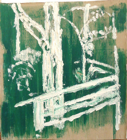 Barbara Goodstein, Tree and Fence, plaster & paint on corrugated cardboard, 28" x 22.25"