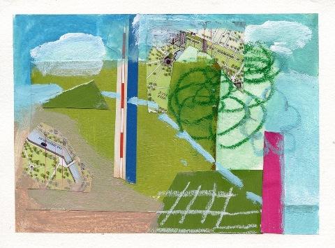 Tilda Mann, The Big Wide Open, mixed-media collage, 5.75" x 9.25" SOLD