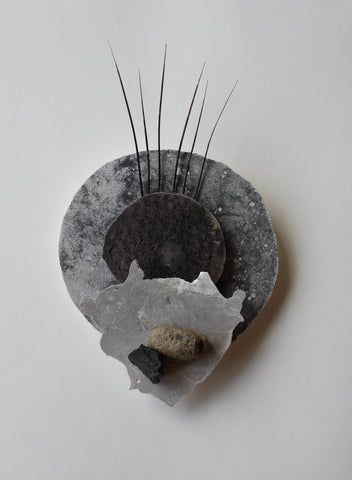 Emily Elliott; Desolate Isolate; plaster monotypes with charcoal, pigment, and carborundum; stones, cactus spines; 9" x 5.5" x 2" SOLD