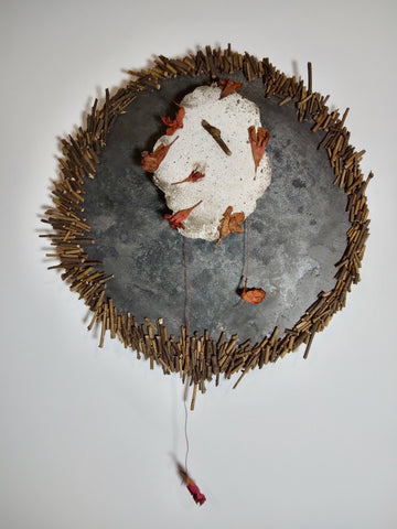Emily Elliott; Timekeeper; plaster monotype with charcoal, wood, and cactus spine; 10” x 5” x 1" SOLD
