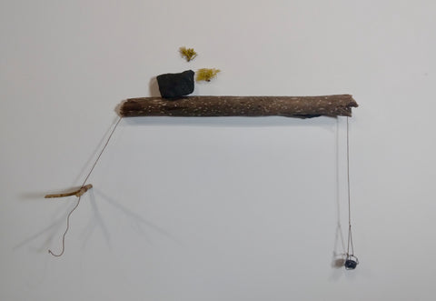 Emily Elliott; Sticks and Stones; sticks, stones, twine. wire and lichen; 17" x 18" SOLD