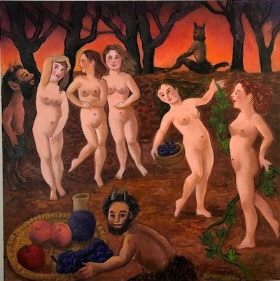 Barbara Mimnaugh, Satyrs and Nymphs, acrylic on canvas, 30" x 30"