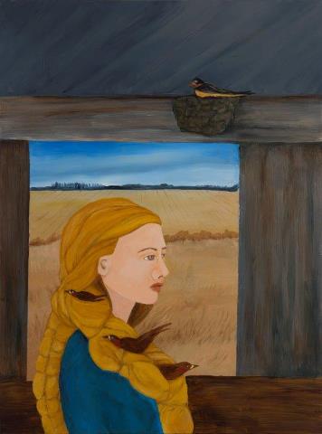 Claire Owen, Swallows Nested In Her Hair, oil on panel, 24" x 18"
