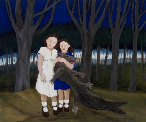 Claire Owen, The Thing In the Forest, oil on panel, 20" x 24"