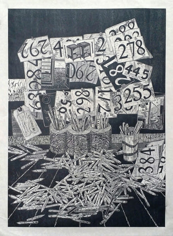 Gene Shaw, Chaos Chaos, woodcut print, 39.5" x 29.5" SOLD