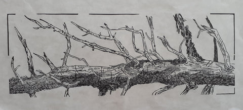 Gene Shaw, Horizontal Tree, woodcut print, 17" x 39"