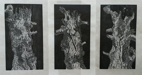 Gene Shaw, Great Cranberry Isle Tree Portrait #4, woodcut print, 24.5" x 28.5"