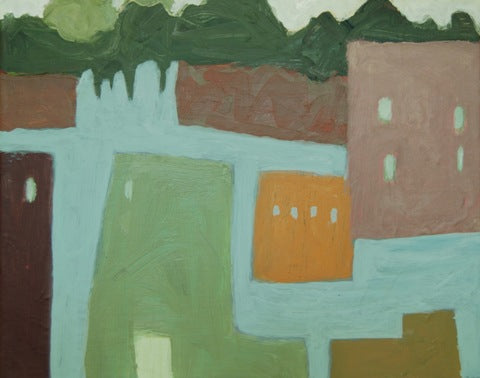 Orange and Green Philadelphia, acrylic on canvas panel, 10" x 8"