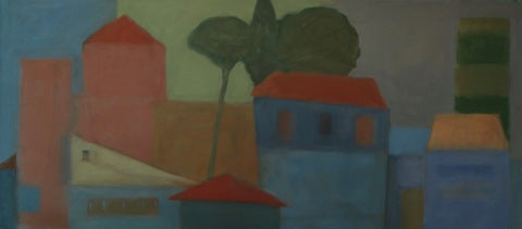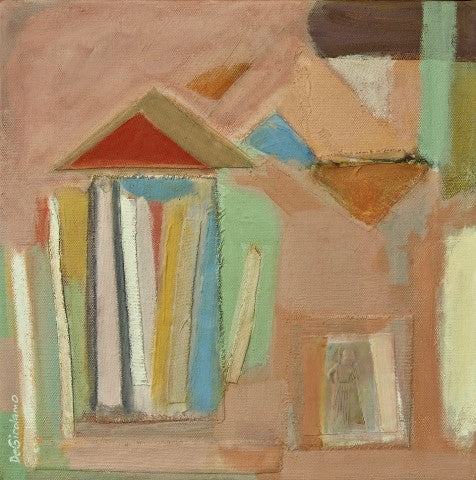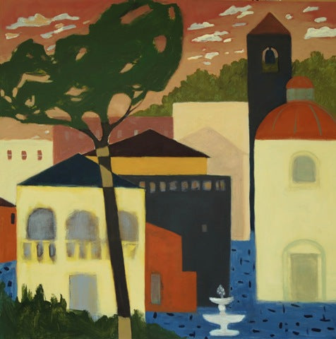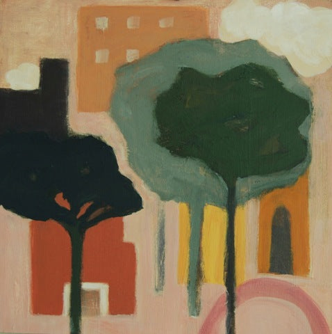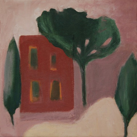 Casa Rossa con Pini, acrylic on canvas, 12" x 12"