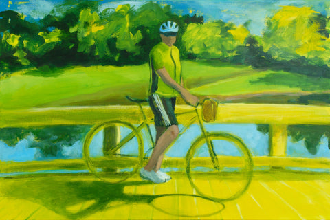 Cyclist on the Bridge, acrylic on canvas, 20" x 30"