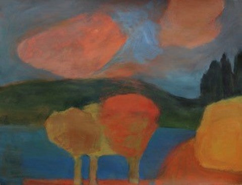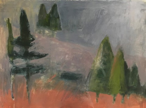 Pines and Pink Sky, acrylic on canvas, 12.5" x 16.5"