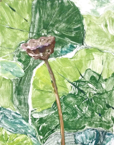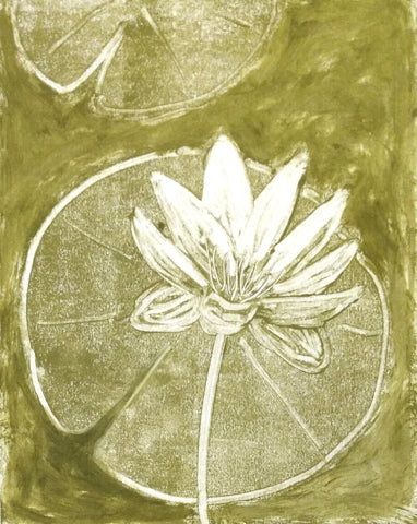Green Waterlily 2, monoprint, 10" x 7.75"