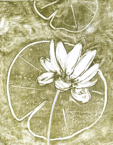 Green Waterlily 1, monoprint, 10" x 7.75"