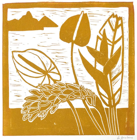 Tropical Flowers Gold, linocut, 11.5" x 11.5" Available