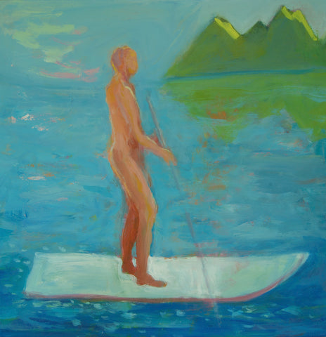 Upright Paddle, St. Lucia, acrylic on canvas, 20" x 20"