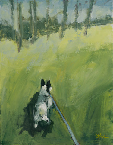 Walking the Dog Through a Meadow, acrylic on canvas, 18" x 14"
