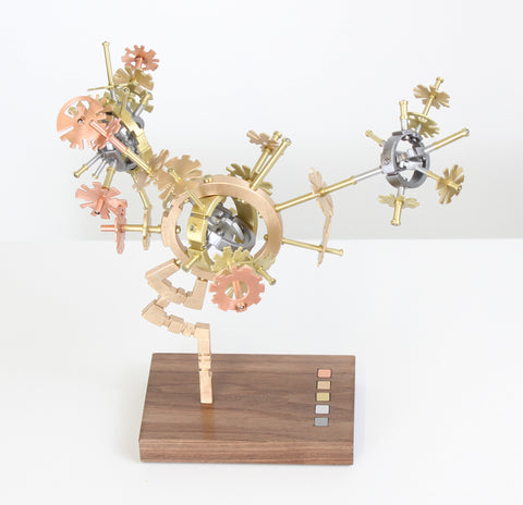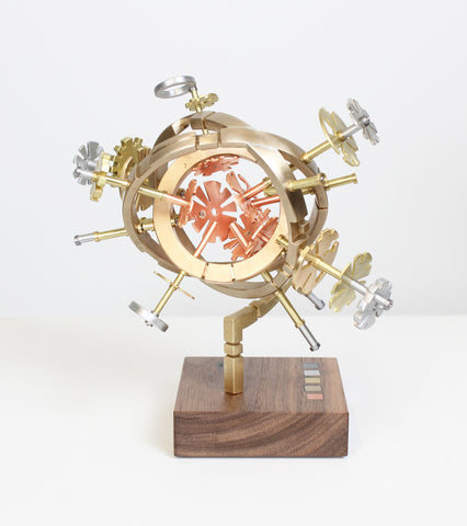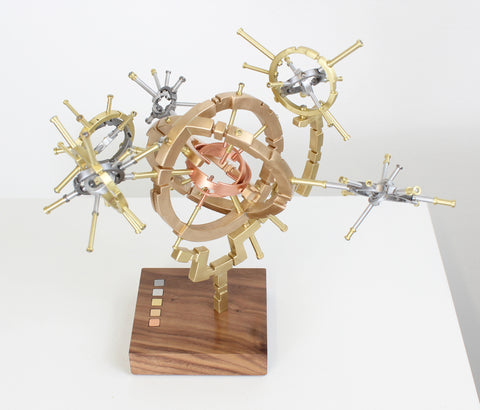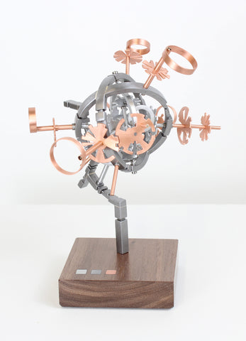 Kathleen Studebaker, AstroObject [1d.o2], copper, steel, aluminum & walnut, 6.5" x 5" x 5"
