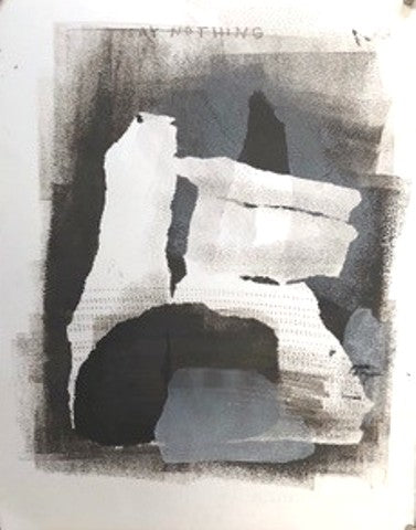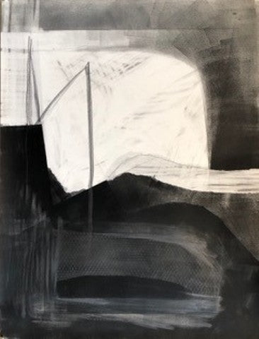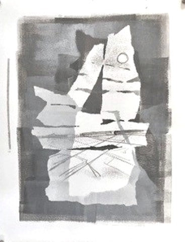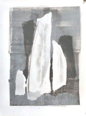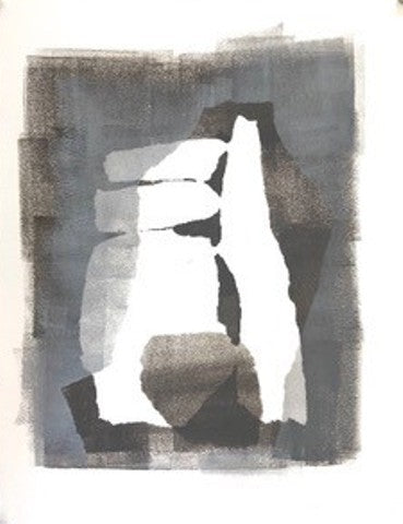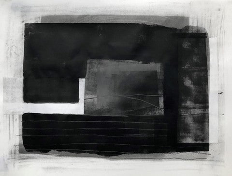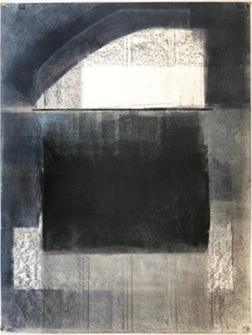 Andrea Krupp, Stone Fort from Within (Embrace), acrylic, graphite, paint stick collage on paper, 19" x 25"