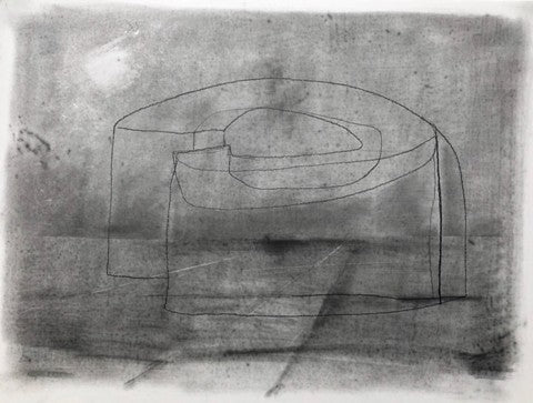 Andrea Krupp, Stone Fort with Passage (Burrow), acrylic, graphite on paper, 19" x 25"