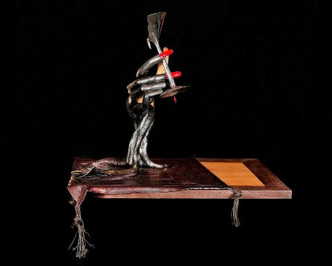 I started doing sculpture as a metal artist 35 years ago. For the last 10 years, I have focused my full-time work on both functional and fine-art metal sculpture. My ideas come primarily from personal emotions elicited by the people around me. Most of the people I meet bring light and joy, an excitement for life. Occasionally I meet people who bring out the darkest of emotion: heartbreak, anguish, despair. Both of these types of people bring inspiration to my work, from compassion to catharsis; to celebrate the joy of true friendship or to exorcise the demons of betrayal. On my early morning walks through the woods, I am always fascinated by the timeless life-or-death struggle between the invasive and indigenous species that populate the woodland. Bittersweet vines wrap themselves around majestic oaks and maple, investing nothing in their own structure and strangling the life from their hosts in a parasitic effort to gain prominence in the highest segments of the canopy. Sometimes the vine wins and the defeated tree withers away, leaving no support for the vine. Sometimes the tree wins, throwing off the invader and filling the canopy with color and beauty, albeit often permanently affected in its morphology by the once devastating encounter.