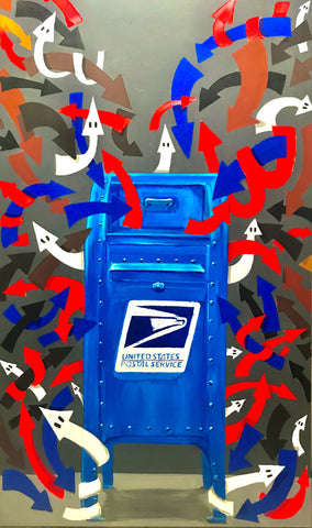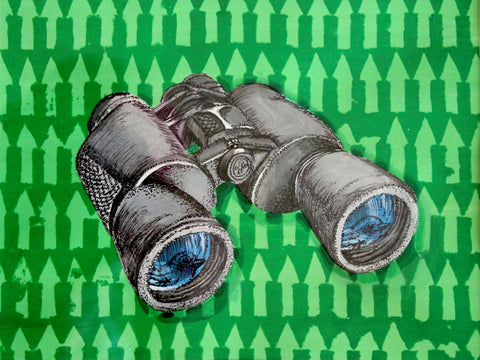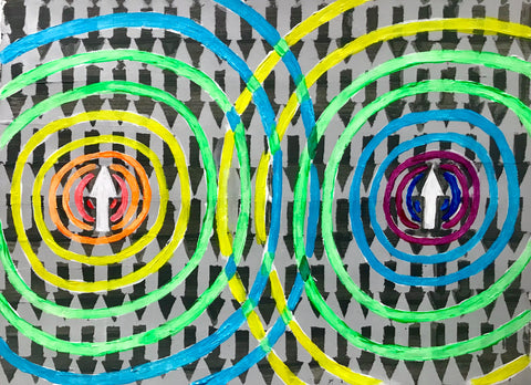Disrupting the Signal, acrylic and silkscreen on paper, 6" x 8"